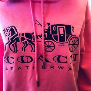 Stylish pink hoodie featuring the iconic Coach logo. Perfect for casual wear. Brand new with tags! Xs small that is roomy and will fit small and medium.
