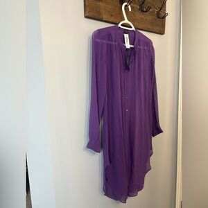 Aritzia Babaton Silk George Purple Sheer Button-Up dress size XS