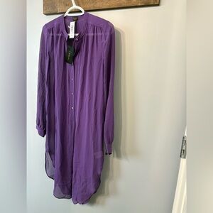 Elegant purple sheer tunic with button-up front. Perfect for layering or to use as a beach cover up