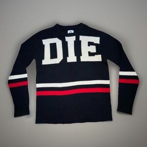 This is an authentic 00s UNIF "DIE POSER" intarsia knit sweater — oversized, fuzzy, and impossible to ignore. Perfect for Y2K collectors, punk/grunge fits, or anyone who wants maximum statement energy.