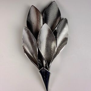 A Vintage Silver Tone Trumpet Flower Design Brooch with ribbed petals and smooth stem. Express yourself with this beautiful accent to your outfit.