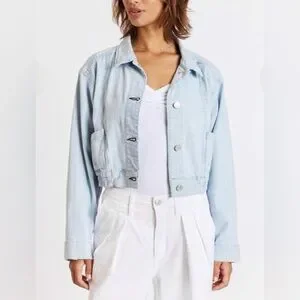 With a subtle herringbone pattern and an oversized, cropped fit.