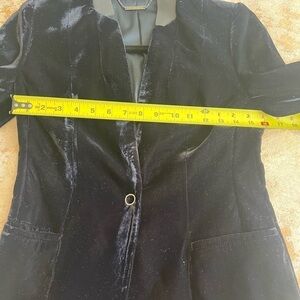 ELLIE TAHARI MIDNIGHT VELVET BLUE WITH LEATHER COLLAR BLAZER SIZE XS