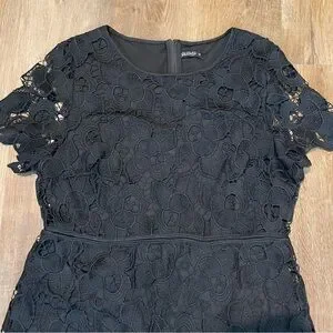 Sophisticated lace design with floral details. Short sleeves. Ideal for special events. Size 18