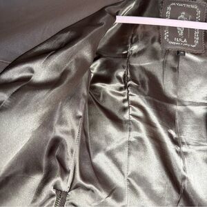 My Tribe Leather Moto Jacket Brown Full Zip Asymmetric Hem Biker Rocker XS Y2K