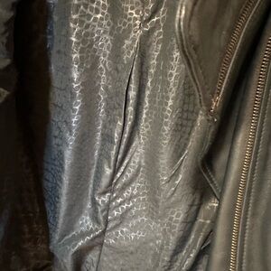 Chic dark green leather jacket by Sam Edelman. Features sleek design and zippered pockets. Ideal for versatile styling.there is no tag but never been used