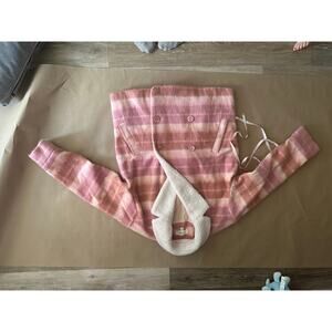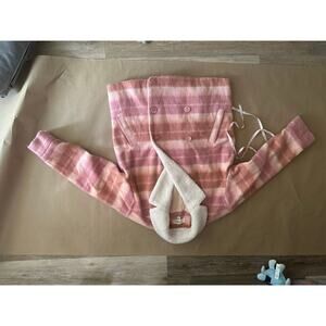 Pink & Brown Striped Pea Coat with Sherpa Collar L*SPACE $139 SIZE SMALL