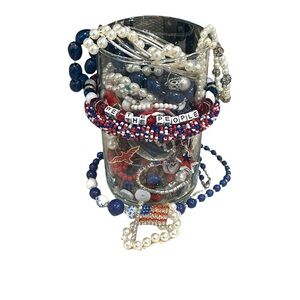 Estate Vintage to now Patriotic Beaded Jewelry Lot Jar filled mixed lot