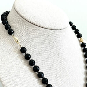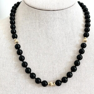 Beautiful Vintage 14K Yellow Gold Bead Ball & Black Onyx Hand Knotted Beaded Necklace 18"