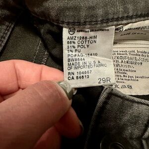 AG The Legging Super Skinny. Good pre-owned condition. Size 29R. Color: faded black/dark gray. Discoloration on the back of the right leg, as indicated in pics. Materials tag also in pics.