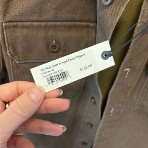 Classic brown shirt jacket by Taylor Stitch. Features button front and dual chest pockets. Ideal for layering.