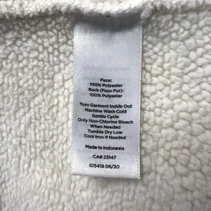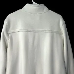 Creamy white fleece jacket, a comfortable and stylish layering piece for cooler days. Featuring a full-zip front for easy wear and a cozy mock neck to keep you warm, this jacket also has a smooth panel across the chest and back. The soft fleece material provides warmth and a gentle feel, while the relaxed fit allows for comfortable movement.
