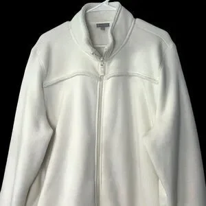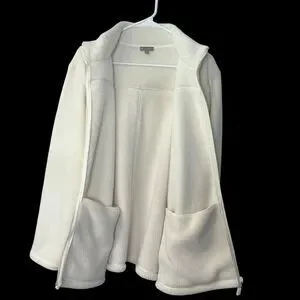 Fleece jacket, women's jacket, talbots, cream jacket, full zip jacket, mock neck, plus size, 3X, cozy, comfy, casual jacket, outerwear, fleece coat