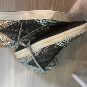 Eye-catching high-top sneakers with a gold, black, pink and silver shimmering design! Your feet WILL get noticed!