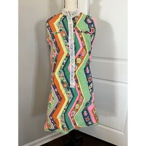 The Lilly Vintage Lilly Pulitzer Shift Dress Bright Colors Lace Detail