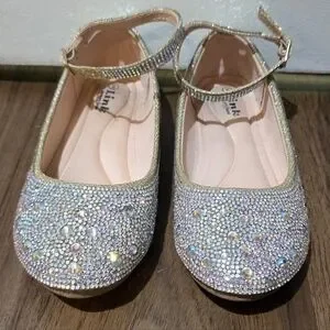 Girls Link Silver/Gold Dress Shoe, Size 2Y. Gently used. Picture #3 shows a mark on the inside of the shoe that could come out.