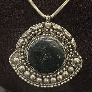 Southwestern Silver And Black Stone Western Boho Necklace