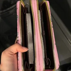 Chic and stylish pink wallet featuring a charming butterfly print. Perfect for adding a touch of elegance to your everyday essentials.