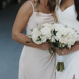 Azazie English Rose “Gathered Cowl Stretch Satin” bridesmaid dress