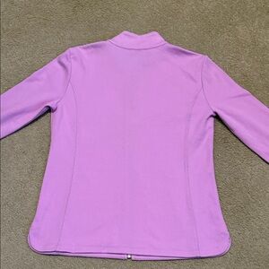 Chic lavender jacket with a zip-up front. Perfect for layering.