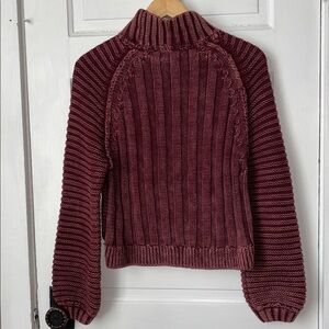 Free People washed burgundy sweetheart sweater. Mock neck and thick ribbing.