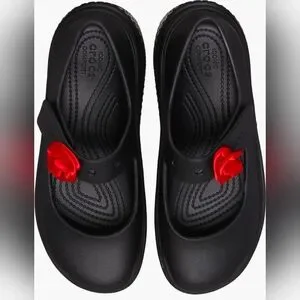 CROCS Black Mules with Red Floral Detail