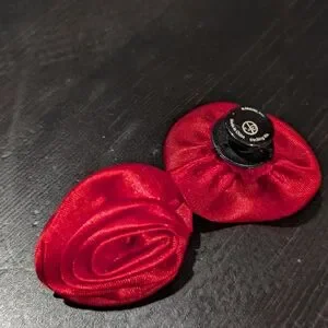 Elegant black mules featuring a striking red floral detail. Perfect for casual wear.