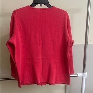 Talbots Hibiscus Pink Cotton Blend Ruffle Front Zip Up Cardigan Sweater Womens