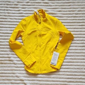 Vibrant yellow zip-up jacket with a sleek design. Perfect for adding a pop of color to your outfit.