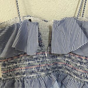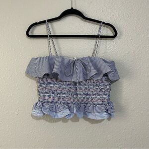 Blue and white striped, smocked crop top from English Factory. Zipper in the back. Washed, never worn. Size large.