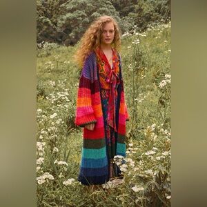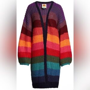Farm Rio Oversized Rainbow Stripes Midi Cardigan Women's Sweater
