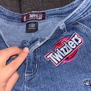 Vtg Hersheys 80s Demin Shorts Embroidered Reeses Kiss Twizzlers Logo Stretch 27