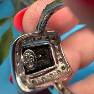 Premier Design vintage silver tone ring, EUC. All glass stones, black center and clear paves. Size 6 3/4. Does not take magnet.