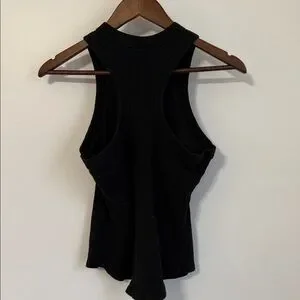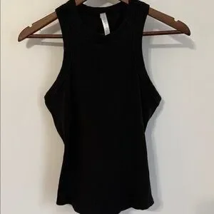 Chic black ribbed tank. Ideal for versatile styling. Comfortable and trendy.