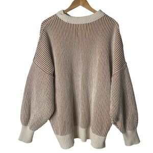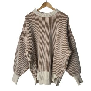 Aerie Striped Oversized Knit Sweater Pullover Tan Cream XL