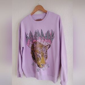 Purple sweatshirt featuring a bold Def Leppard graphic design.