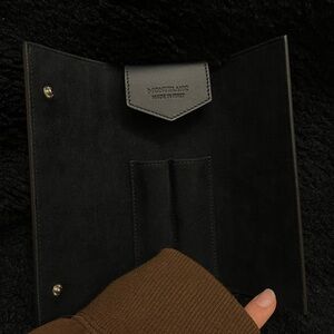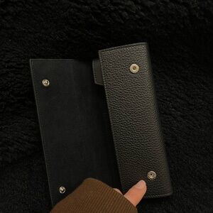 Sleek black leather pen holder with Montblanc branding. Lightly used