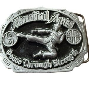Showcase your passion for martial arts with this stylish silver belt buckle. Perfect for adding a unique touch to your outfit.