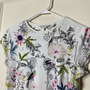 Ted Baker White Top with Colorful Floral Design