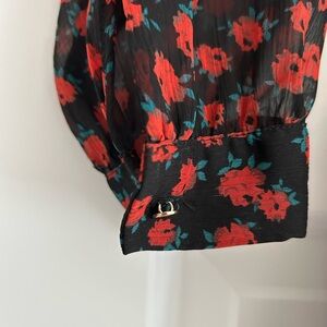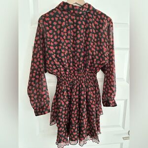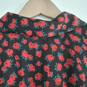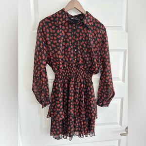 Zara Floral Long Sleeve Dress Red Black Size M