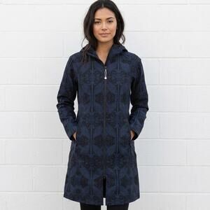 Lululemon Apres Yoga Dancers in Snow Navy Blue Long Hooded Trench Jacket, size 6