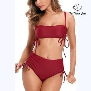 Immerse yourself in the fiery, sun-drenched embrace of the Shekini tube top bikini; a red-hued siren song screaming out of the cosmic ether to set ablaze the monotony of the grey everyday existence. Crafted from a relentless concoction of polyester and elastane, this brand-new, pulsing spectacle of swimwear dares to defy the conventional, just as you dare to defy the banality of the mundane. A hypnotic drawstring holds this symphony of chaos together, a testament to the precarious balance of life itself, ready to unravel at a moment's notice—much like the relentless, gnashing maw of society.
