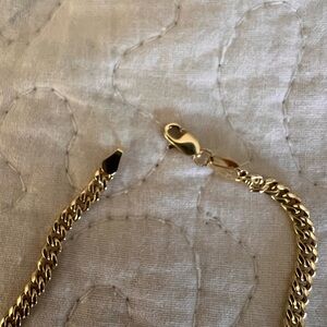 This elegant 14k gold chain necklace adds a touch of sophistication to any outfit. Perfect for any occasion. Not sure of weight but it does have some! I love it but do not wear so looks new! Maybe about 4 grams! 16” length!
