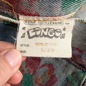 Bongo by Gene Montesano Vintage Floral Print High Waist Denim Mini Skirt, size 9