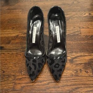 Manolo Blahnik Black Leopard Print Heels