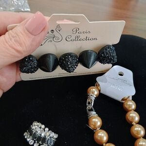 Elevate your style with the jewelry set. Featuring elegant black earrings and a stunning gold bracelet, this set adds a touch of sophistication to any outfit.