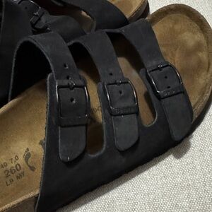Like New Betula by Birkenstock Triple Strap-Sz 40-Black/Black-Narrow Fit-Leather