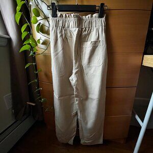 These are high-rise, cropped pants with a straight leg, elasticized paperbag waist and front slash pockets. They're made with TENCEL™ Lyocell — a wood-based fibre produced through a closed-loop production process.