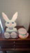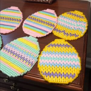 Vintage Handmade Crochet Knit Easter Bunny Coaster Set Cute Kitsch Granny Square