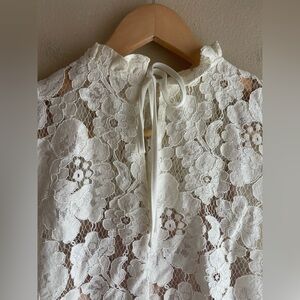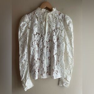 WAYF Women White Lace Blouse Floral Size XS Long Sleeve
